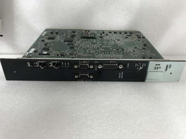 The module contains a 300 MHz Intel Celeron M processor and 10 MB of battery-backed RAM/10 MB of Flash memory for program storage and runtime data. A 10/100 Mbps Ethernet port on the front provides connectivity to HMIs, SCADA systems, and other controllers for peer-to-peer messaging. The CPU also features watchdog timers and self-diagnostics to detect hardware faults, memory corruption, or program execution errors, triggering a fail-safe state (e.g., controlled shutdown) if a critical fault occurs.